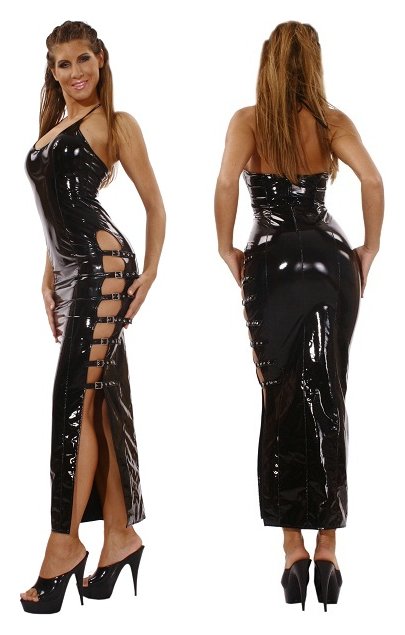 Элегантная, притягательная, сексуальная, строгая – именно так будет называть мужчина женщину в этом роскошном платье из нежного винила. Как бы она ни повернулась, трудно оторвать взгляд. Сбоку – пикантный разрез и череда ремешков. Спереди – пышный бюст, видный из-за глубокого декольте. Ну а сзади – аппетитная попка, обтянутая винилом, как еще одним слоем кожи.