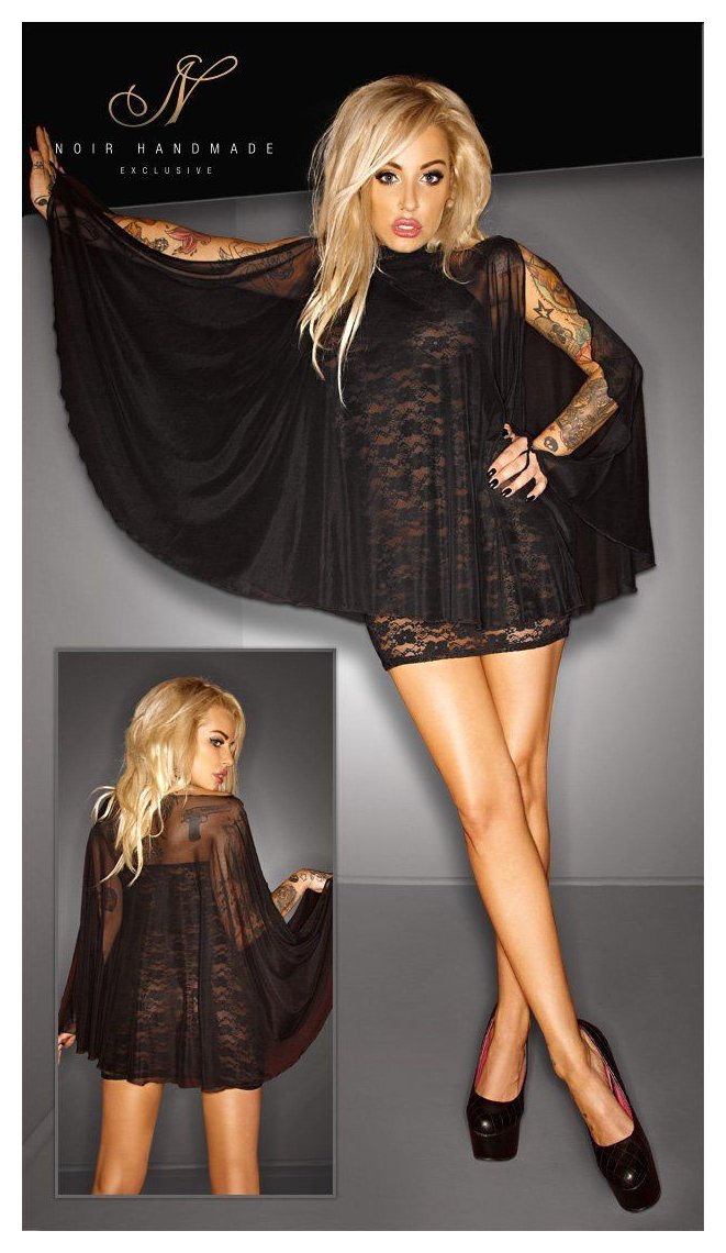 Чёрное кружевное платье с прозрачной накидкой типа летучая мышь . Эффектный наряд для романтического ужина или вечеринки. В комплекте: платье, накидка.