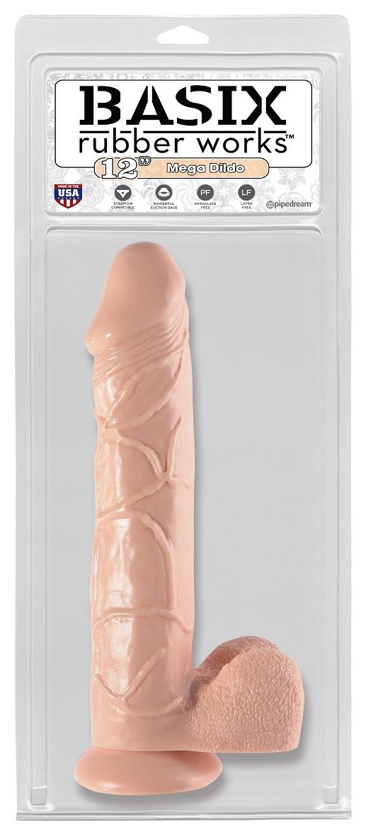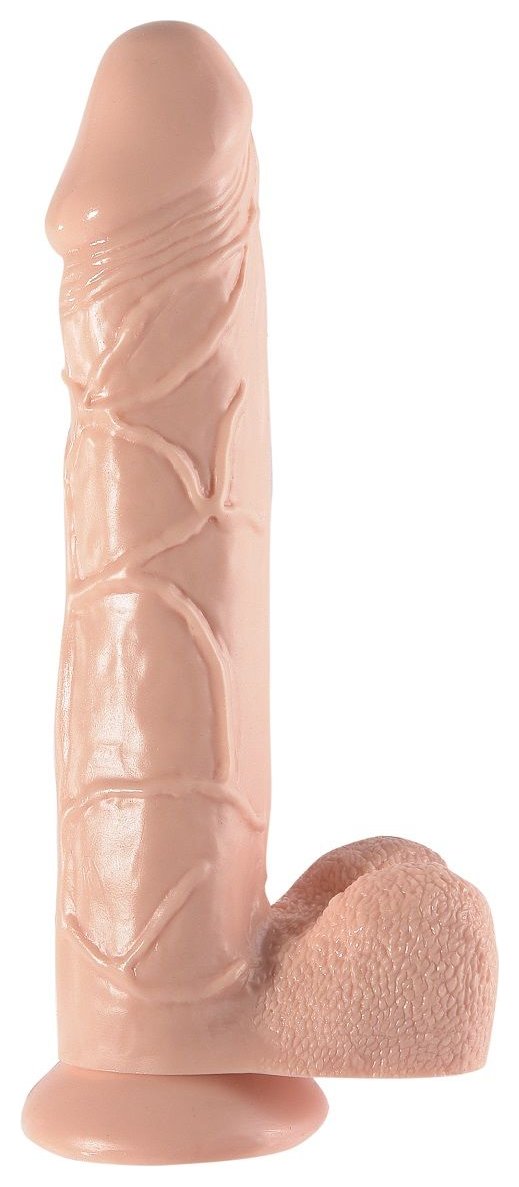 Телесный фаллоимитатор-гигант 12 Mega Dildo. Ярко выраженный рельеф вен. Присоска в основании.