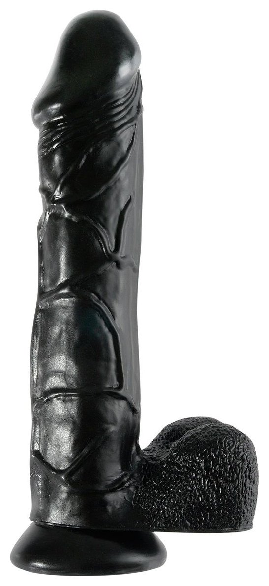 Чёрный фаллоимитатор-гигант 12 Mega Dildo. Ярко выраженный рельеф вен. Присоска в основании.