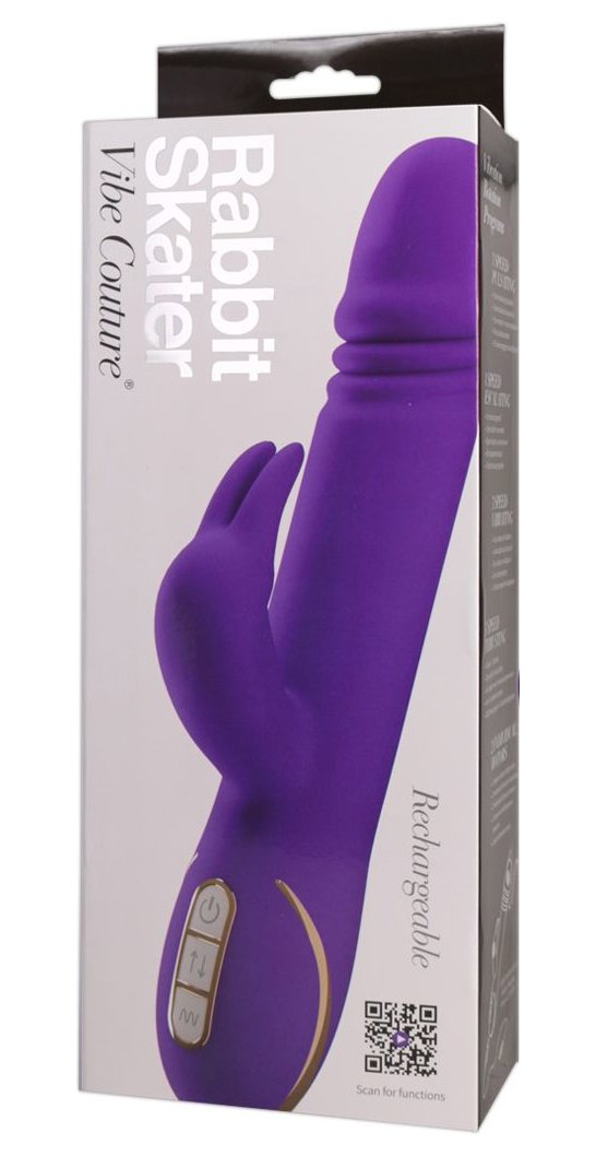 Фиолетовый вибратор с выпуклой головкой и стимулятором клитора Rabbit Skater - 23 см