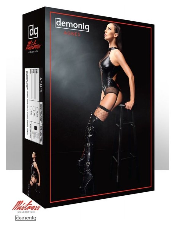 Боди Agnes с сетчатыми вставками, пажами для чулок и алой шнуровкой на спинке.