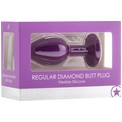 Фиолетовая анальная пробка OUCH! Regular Diamond Butt Plug с прозрачным кристаллом - 7,3 см