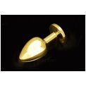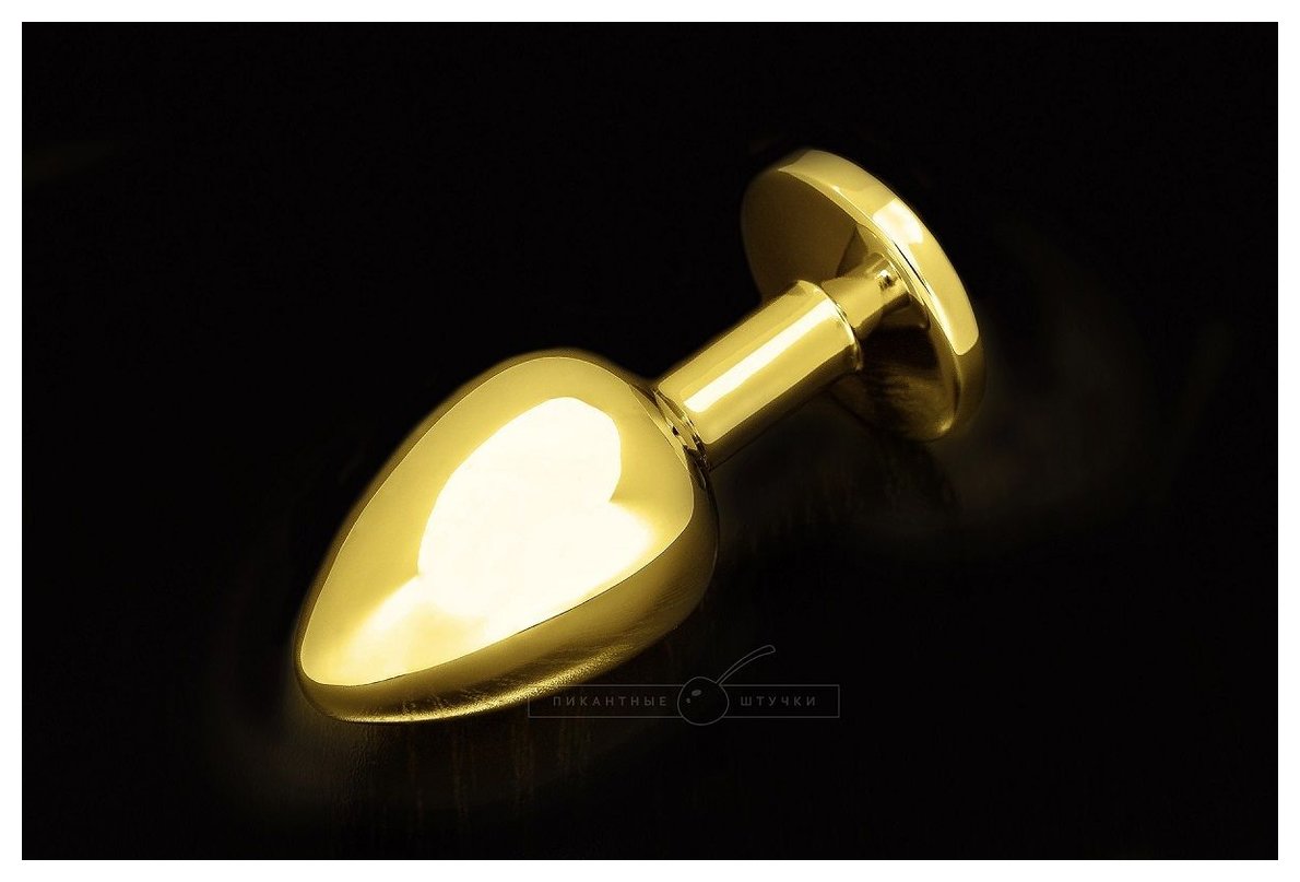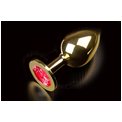 Большая золотистая анальная пробка с красным кристаллом - 9 см