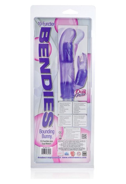 Вибромассажер 10-Function Bendie Bounding Bunny Vibes - гибкая игрушка для максимально дерзких ощущений. Включает в себя функцию стимуляции точки G для максимального чувственного удовольствия. Двойной моторчик с 10 функциями вибрации, пульсации и эскалации для максимального удовлетворения. С мягким силиконовым кнопочным управлением и мгновенной кнопкой включения / выключения. Рабочая длина - 13,25 см.