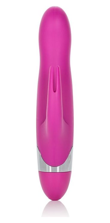 Вибромассажер с клиторальной стимуляцией Turn it Up! 7-Function Silicone Massager. 7 функций интенсивной вибрации, пульсации и эскалации, 2 мощных моторчика. Запоминает последнюю использованную функцию, удобный пульт. Рабочая длина - 11,4 см.