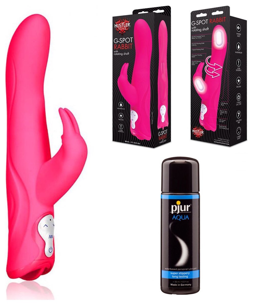 Smart Set №15: хай-тек вибратор и лубрикант на водной основе. Многофункциональный вибромассажер со стимулятором клитора розового цвета из приятного силикона наивысшего качества и загнутой головкой для стимуляции G-точки. Вибратор имеет функцию вибрации и 3 скорости ротации. Стимулятор клитора в виде зайки с ушками - три скорости вибрации. Рельефные впадины по бокам ствола доставят еще больше удовольствия. Водонепроницаемый. Лубрикант на водной основе. Качество говорит само за себя. Очень бережно отностися к слизистым оболочкам на микробиологическом уровне. Лубрикант увлажняет кожу, не делая ее липкой. Не содержит нефтепродуктов, масел, и парфюмерных добавок, что делает его особо нежной для вашей кожи и слизистых оболочек. Сверхмягкая формула с продолжительным скольжением питает и защищает сухую и поврежденную кожу. Будь то ежедневные ласки или регулярный уход за телом: pjur® AQUA всегда оставляет приятные ощущения. Объем флакона лубриканта - 30 мл. Длина вибратора - 25 см., рабочая длина - 13,5 см., диаметр - 3,5 см.