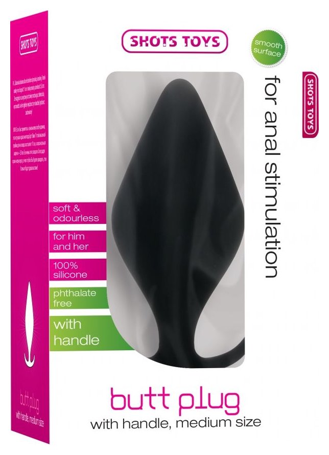 Чёрная анальная пробка Butt Plug with Handle Medium - 12 см