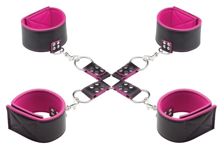Чёрно-розовый двусторонний комплект для бандажа Reversible Hogtie