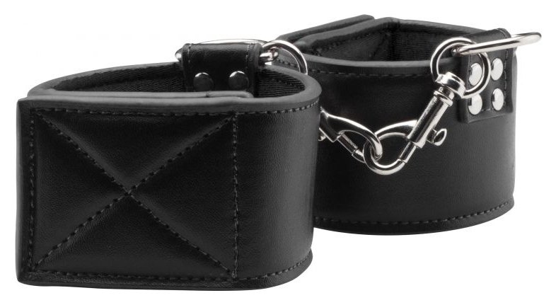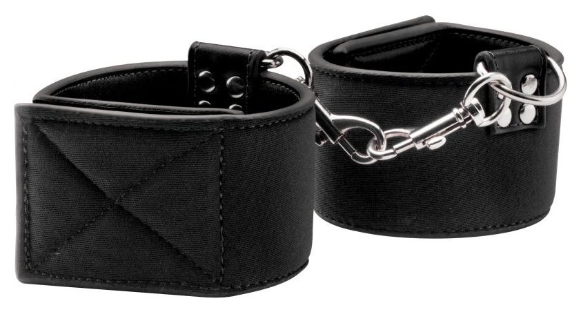 Одна из сторон этих наручников полиуретановая, а другая — неопреновая, и это позволяет выбирать касающийся вашей кожи материал простым выворачиванием наручников на другую сторону. Неопреновая сторона цветная, а кожаная — чёрная, для придания грубости её внешнему виду! Они также снабжены застёжками-липучками, то есть они подойдут практически каждому.