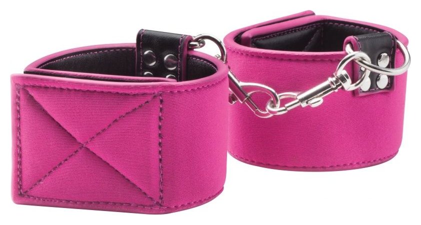 Одна из сторон этих наручников полиуретановая, а другая — неопреновая, и это позволяет выбирать касающийся вашей кожи материал простым выворачиванием наручников на другую сторону. Неопреновая сторона цветная, а кожаная — чёрная, для придания грубости её внешнему виду! Они также снабжены застёжками-липучками, то есть они подойдут практически каждому.