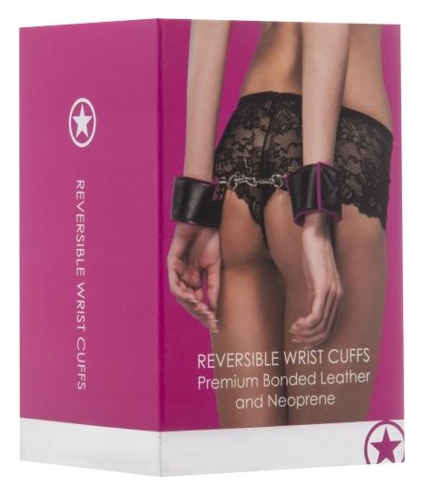 Чёрно-розовые двусторонние наручники Reversible Wrist Cuffs