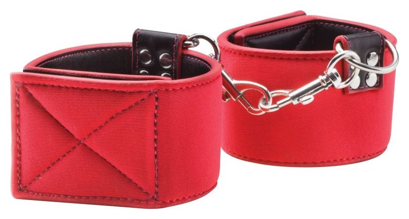 Одна из сторон этих наручников полиуретановая, а другая — неопреновая, и это позволяет выбирать касающийся вашей кожи материал простым выворачиванием наручников на другую сторону. Неопреновая сторона цветная, а кожаная — чёрная, для придания грубости её внешнему виду! Они также снабжены застёжками-липучками, то есть они подойдут практически каждому.