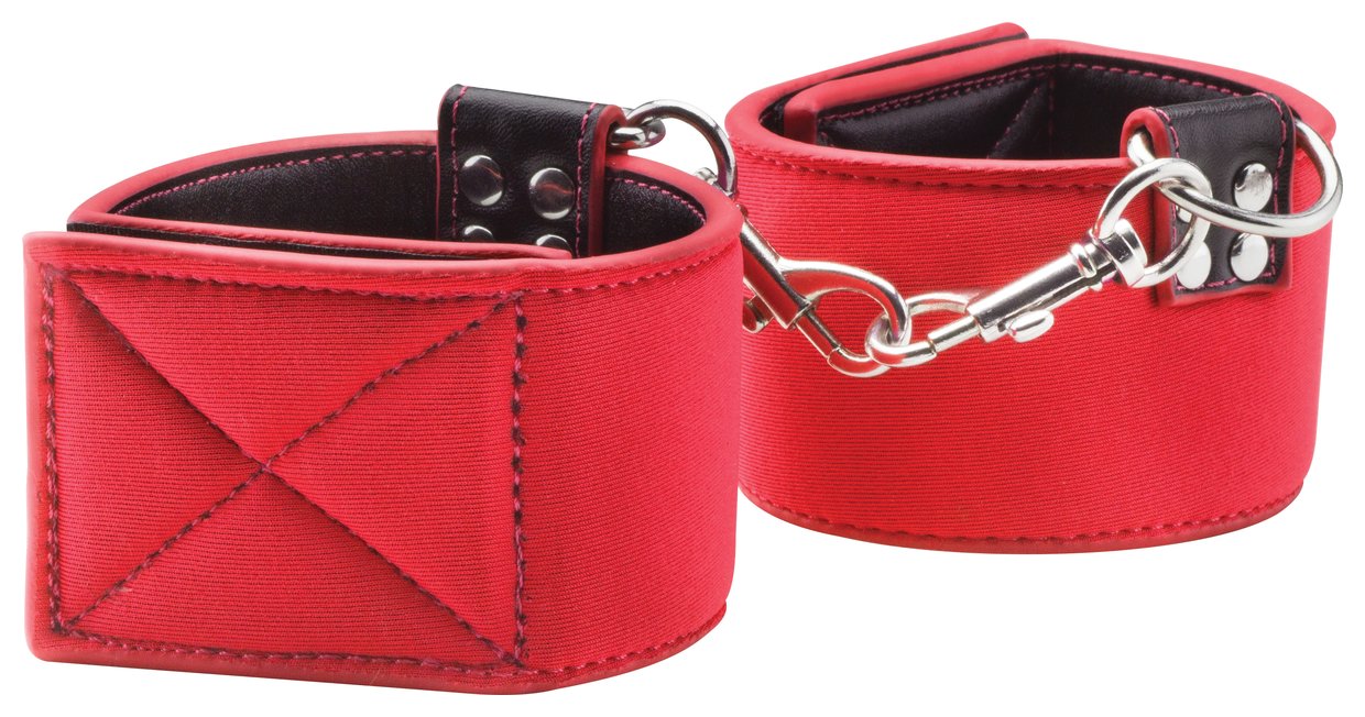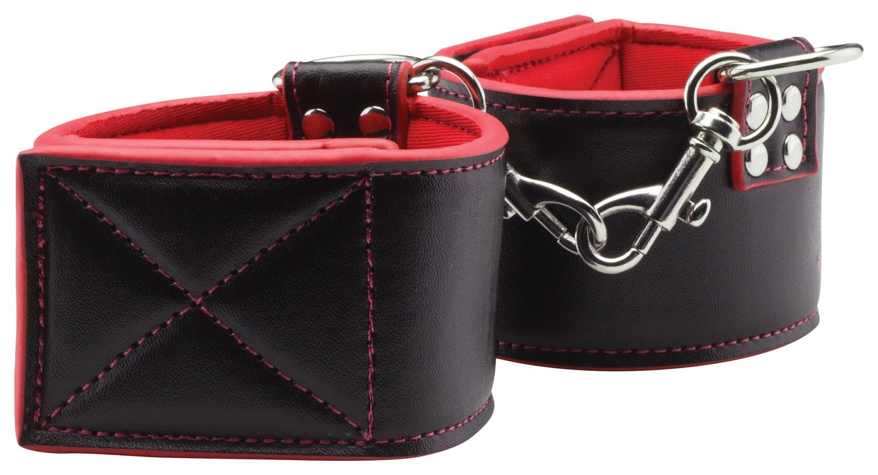 Одна из с торон этих оков полиуретановая, а другая — неопреновая, и это позволяет выбирать касающийся вашей кожи материал простым выворачиванием манжет на другую сторону. Неопреновая сторона цветная, а полиуретановая — чёрная, для придания грубости её внешнему виду! Они также снабжены застёжками-липучками, благодаря чему подойдут практически каждому.