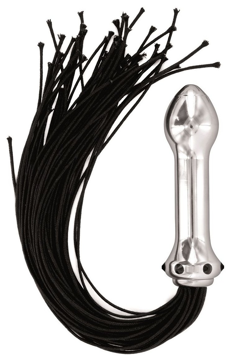 Анальная пробка WHIP DILDO с хвостами из чёрной верёвки