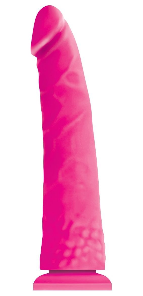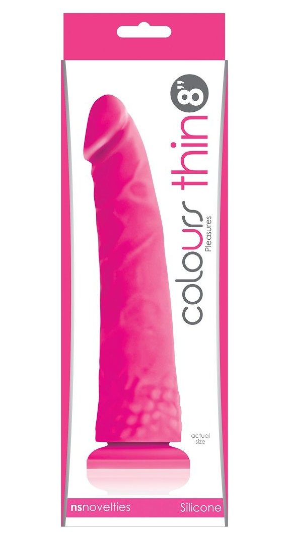 Розовый фаллоимитатор без мошонки Pleasures Thin 8 Dildo. В основании присоска для фиксации игрушки.