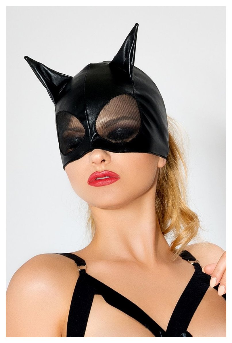 Чёрная маска с ушками и сеткой