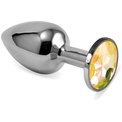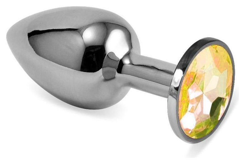 Серебристая анальная пробка с жёлтым кристаллом размера S. Вес - 55 гр.