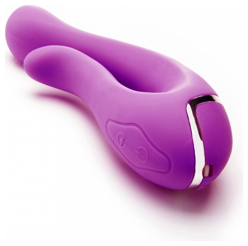 Великолепный вибромассажер с двумя виброэлементами изготовлен из высококачественного силикона, имеет бархатистое покрытие. Его форма и клиторальный отросток специально созданы, чтобы проникнуть в самые тайные уголки Вашего тела и дарить невероятные ощущения. Имеет 10 режимов вибрации, которые удобно переключаются кнопками на рукоятки игрушки. Рабочая длина - 11,5 см.Батарейки в комплекте.