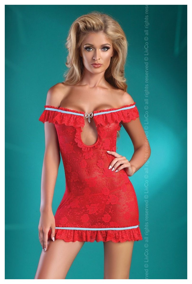 Элегантный бэби-долл из нежного кружевного материала с цветочным орнаментом, открытые плечи и вырез капелькой делает это бэби-долл более пикантным. Вырез украшен подвеской из страз в форме бантика. В комплект входят трусики. В комплекте: сорочка, трусики-стринги.