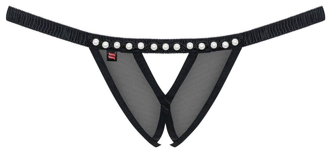 Открытые трусики стринги с доступом, украшены жемчужинками.