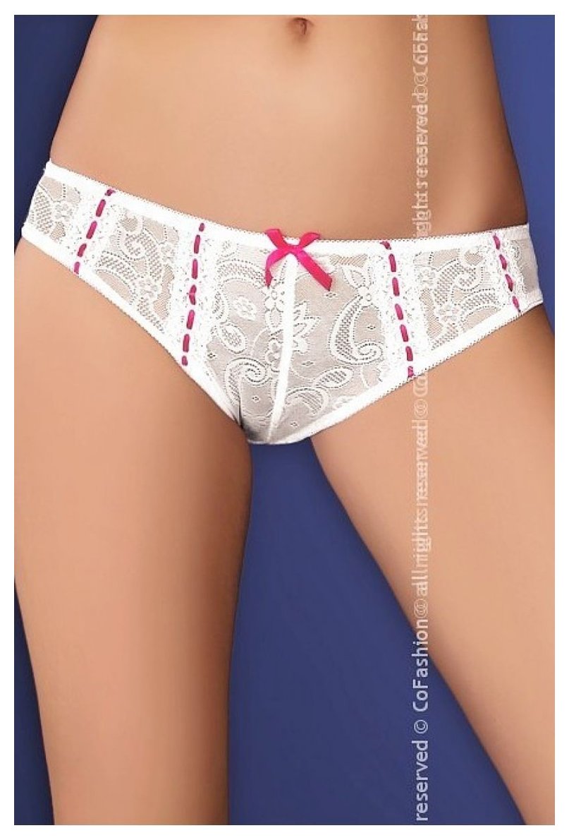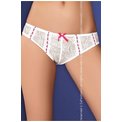 Кружевные белые трусики, спереди украшены атласной лентой.
