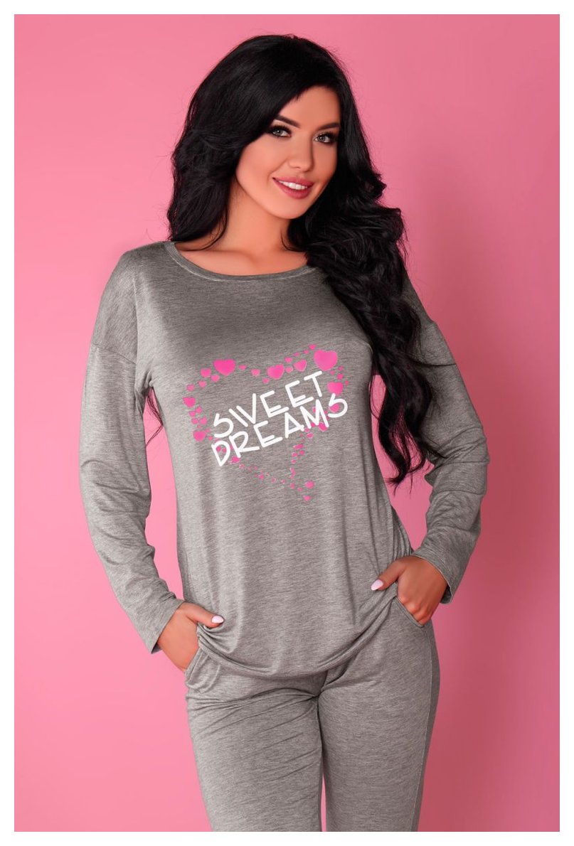 Серая пижамка с принтом. Надпись - sweet dreams. В комплекте: топ с длинными рукавами, штаны.