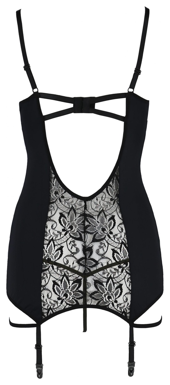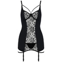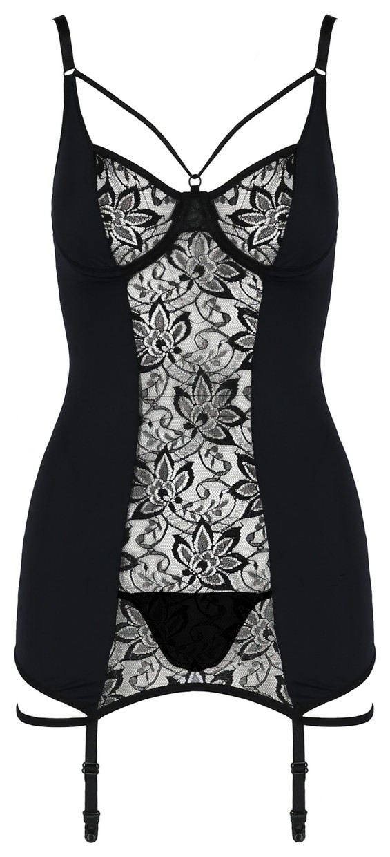Элегантная сорочка из стрейч-атласного материала и кружева, чашка мягкая на косточке, пажи для чулок регулируются по длине, в комплект входят трусики. В комплекте: сорочка, трусики-стринги.