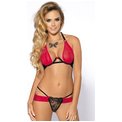Игривый комплект, бюстгальтер и трусики. Бюстгальтер, чашка мягкая на косточке, бретели регулируются по длине, на застежке. Трусики с кокетливой оборкой сзади. В комплекте: бюстгальтер, трусики.