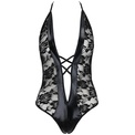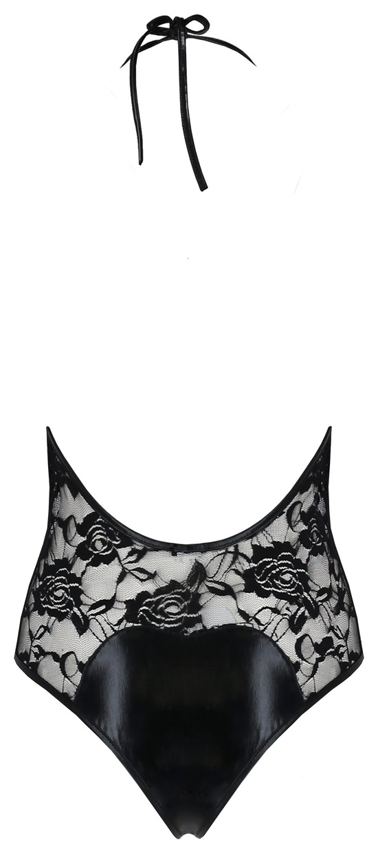 Элегантное кружевное боди, спина полуоткрытая, бретели завязываются вокруг шеи, низ боди на застежке, крючки.