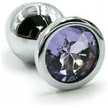 Анальная пробка из алюминия размер M. Страз в основании круглой формы, выполнен из стекла светло-фиолетового цвета. Упакована в вельветовый мешочек для хранения. Вес - 82,5 гр.