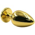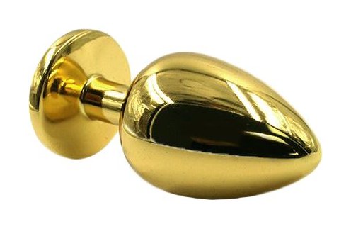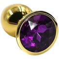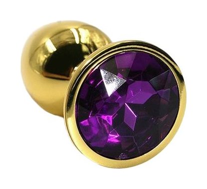 Золотая анальная пробка из алюминия размер S. Страз в основании круглой формы, выполнен из стекла темно-фиолетового цвета. Упакована в вельветовый мешочек для хранения. Вес - 52 гр.