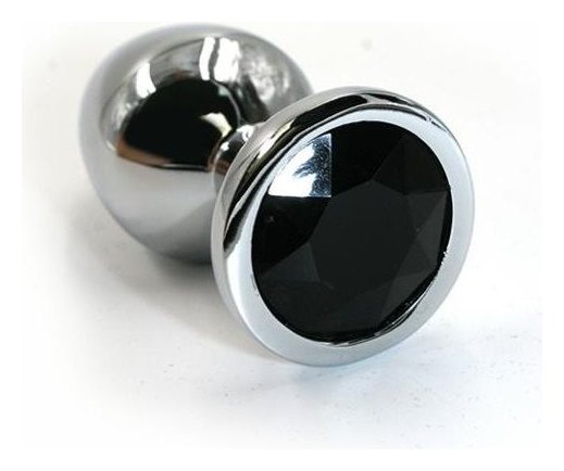 Серебристая алюминиевая анальная пробка с чёрным кристаллом - 6 см