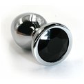 Анальная пробка из алюминия размер S. Страз в основании круглой формы, выполнен из стекла черного цвета. Упакована в вельветовый мешочек для хранения. Вес - 52 гр.