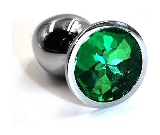 Серебристая алюминиевая анальная пробка с изумрудным кристаллом - 6 см