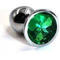 Анальная пробка из алюминия размер S. Страз в основании круглой формы, выполнен из стекла темно-зеленого цвета. Упакована в вельветовый мешочек для хранения. Вес - 52 гр.