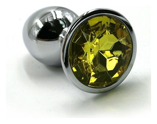 Анальная пробка из алюминия размер M. Страз в основании круглой формы, выполнен из стекла желтого цвета. Упакована в вельветовый мешочек для хранения. Вес - 82,5 гр.