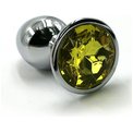 Серебристая алюминиевая анальная пробка с желтым кристаллом - 7 см