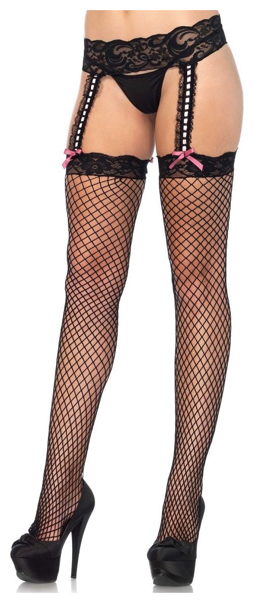 Чулочки-сетка с ажурным поясом и атласными бантиками.