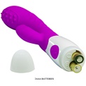 Лиловый вибратор Bruno выполнен из 100% силикона, оснащен двумя виброэлементами, которые имеют 7 различных программ управления. Один расположен в стволе игрушки с загнутой пупырчатой головкой, а второй - внутри клиторального отростка. Уникальный дизайн игрушки позволяет во время использования максимально воздействовать на зону точки G, при этом не прекращая стимулировать клитор. Двойная стимуляция максимально быстро приближает момент сексуальной разрядки! Рабочая длина - 10 см.