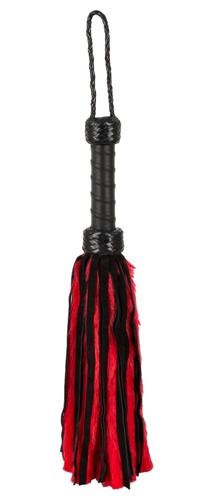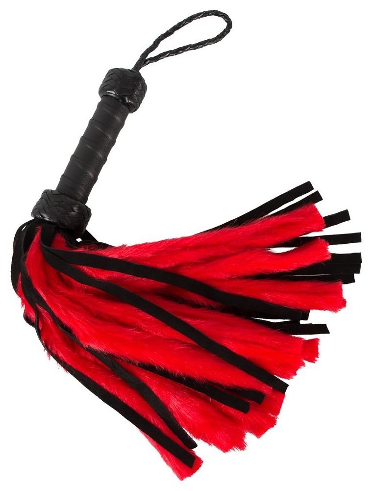 Красно-чёрный флоггер с хвостами из искусственного меха и замши - 45 см