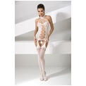 Комбинезон с имитацией шнуровки и оригинальными бретелями вокруг шеи. С имитацией чулочек и интимным доступом.
