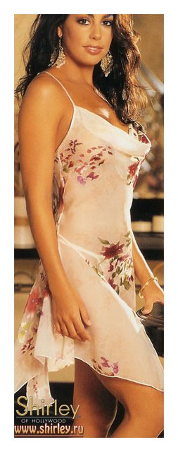 Сорочка из тончайшего шелка. Асимметричный низ с высоким разрезом и рваными краями. На спине глубокий вырез. Перекрещивающиеся атласные бретели регулируются. В комплекте с трусиками-стринг. Состав: шелк. Предметов в комплекте: 2-сорочка и трусики