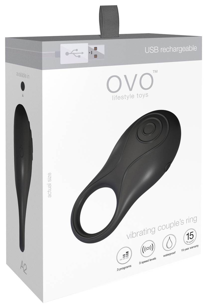 Чёрное эрекционное кольцо OVO A2 с вибрацией