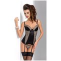 Элегантный корсаж из стрейч-атласного материала, чашка на косточке, застежка на крючках. Корсаж украшен цветочным принтом, пажи для чулок регулируются по длине, отстегиваются. Низ корсажа продублирован резинкой для лучшей посадки. В комплект входят трусики. В комплекте: корсаж, трусики-стринги.
