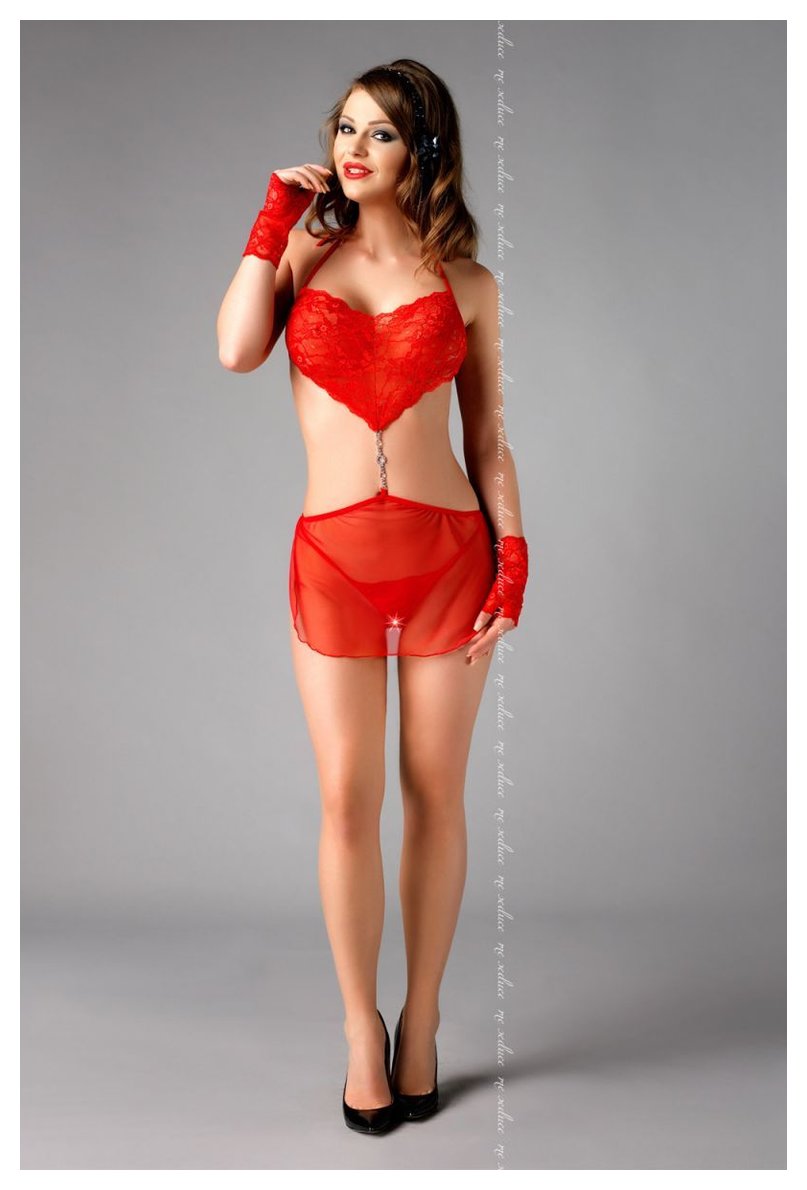 Оригинальная полупрозрачная сорочка Elza с лифом-сердцем. В комплекте: сорочка, трусики-стринги, перчатки.