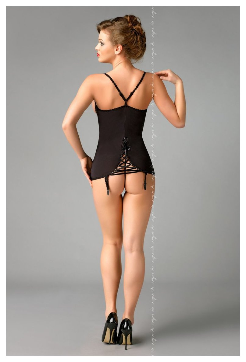 Коротенькая облегающая сорочка Carla с открытым лифом. В комплекте: сорочка, трусики-стринги.