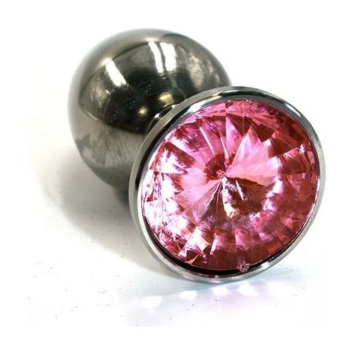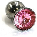 Анальная пробка из алюминия размер L. Страз в основании круглой формы, выполнен из стекла светло-розового цвета. Упакована в вельветовый мешочек для хранения. Вес - 165,5 гр.