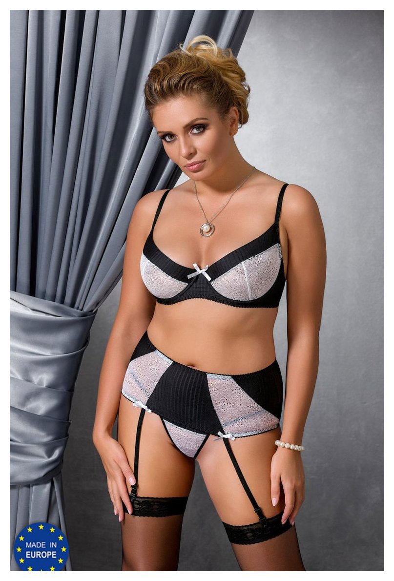 Соблазнительный комплект Larisa с кружевными элементами. В комплекте: бюстгальтер, пояс, трусики-стринги.