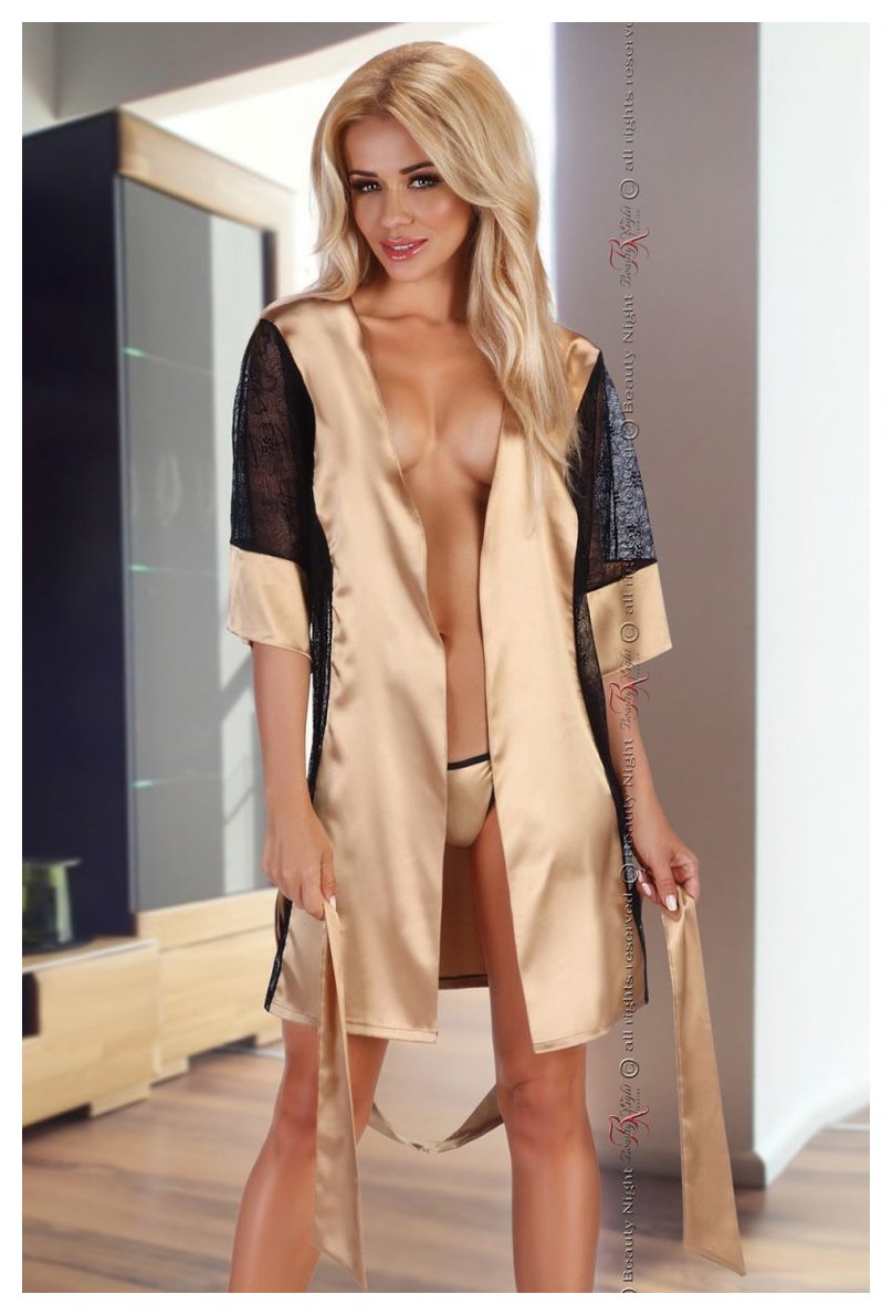 Атласный пеньюар Stephanie с кружевными вставками, в комплекте идут стринги. В комплекте: пеньюар, трусики-стринги.